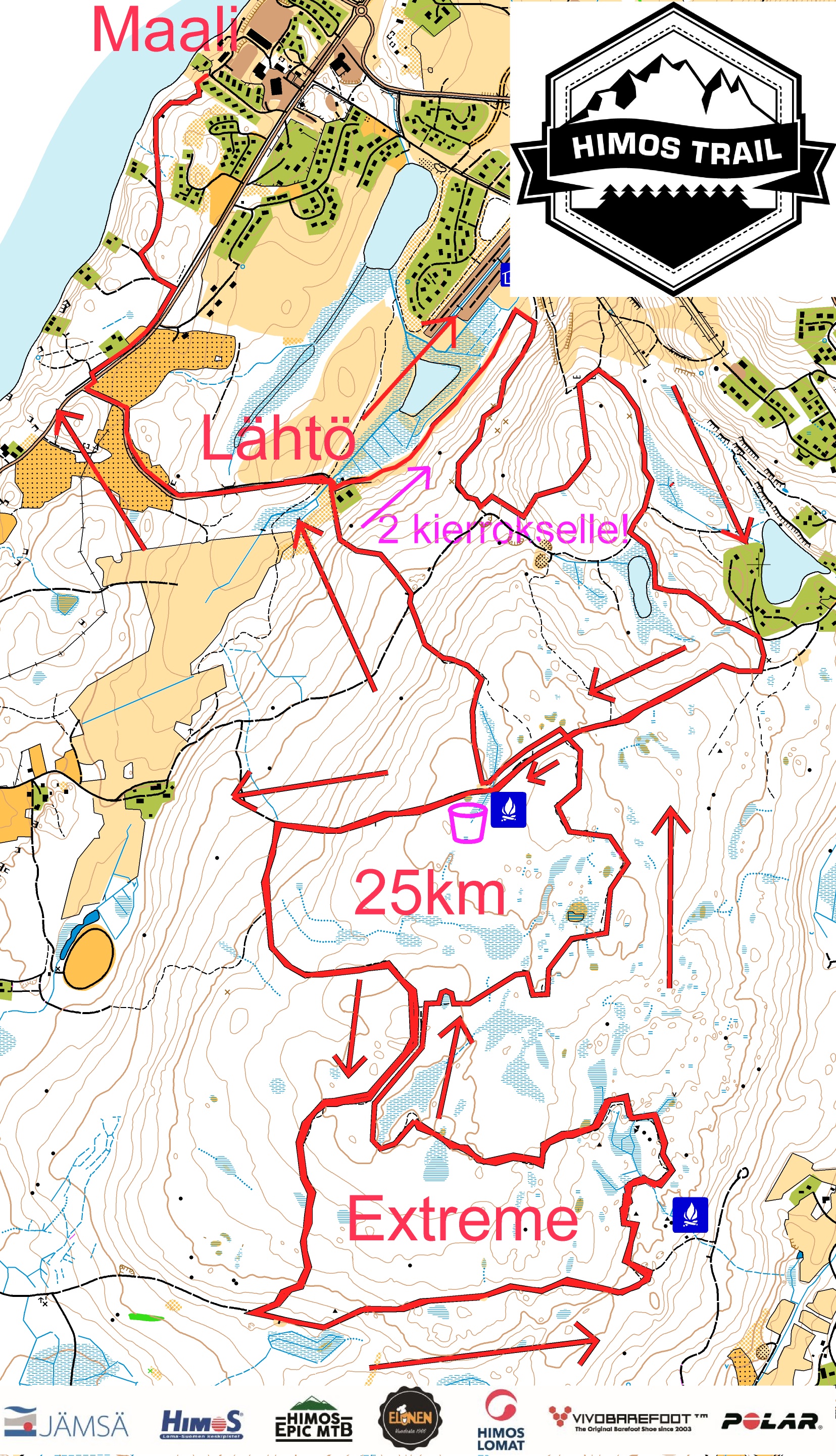 Winter Trailin pisimmän matkan eli Himos Extremen reittikartta on julkaistu. Himos Extreme on 25km polkujuoksuelämys, joka tarjoilee juoksijalle eteläsuomalaisittain poikkeuksellisten korkeuserojen myötä ihanan hapottavia fyysisiä haasteita sekä pitkiä hulluttelevan mutkaisia alamäkipolkuja.