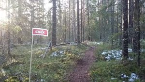 Himos Trail -reitti on nyt historiallisen märkä ja mutaakin löytyy mukavasti. Keli muistuttaa huhtikuista polkujuoksukeliä, jossa maasto on hiljalleen sulanut lumisen talven jäljiltä ja on vielä osaksi edelleen jäässä.
