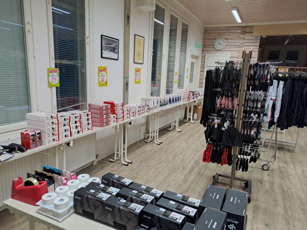 Team Sportia Jämsän myyntipiste sijaitsee Kokouskeskus Koulun alakerrassa laajassa esittelytilassa. Paikalla on Sportian asiantuntijoiden lisäksi tuote-esittelijöitä mm. VJ:n, Fenixin sekä SWIX:n tuotemerkeiltä.